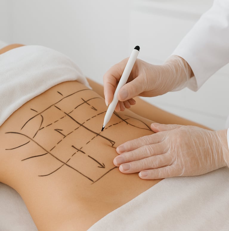 ✔ Mapa completo de marcação do abdômen para gordura localizada